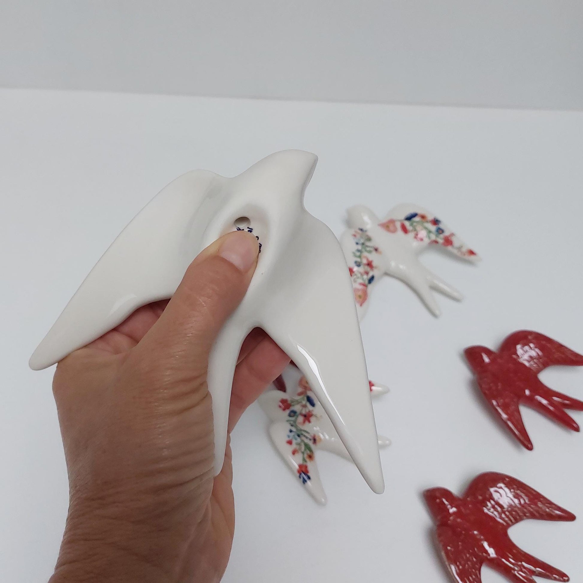 PACK OF 6 Portuguese ceramic swallow decored with artisanal methods entirely by hand with classic "Azulejo" designs and off white satin effect. Hand painted and glazed ceramic swallow. A piece of great beauty and Portuguese tradition, to decorate a wall in your house, an area of the workplace, or to make a very special gift. If you need more info about item please contact us.