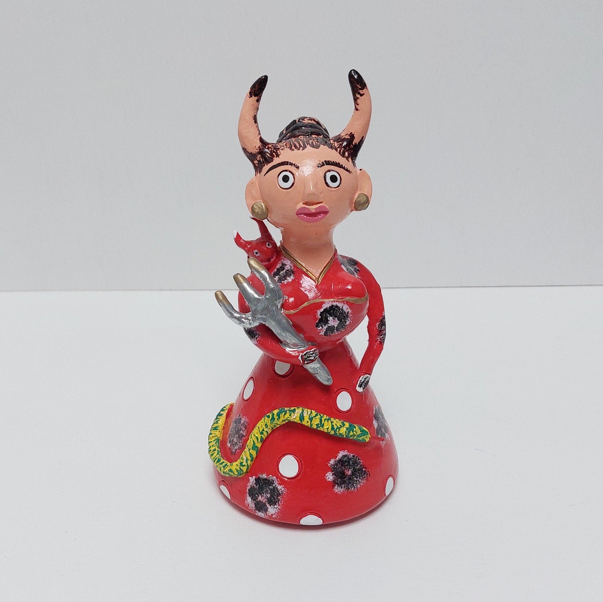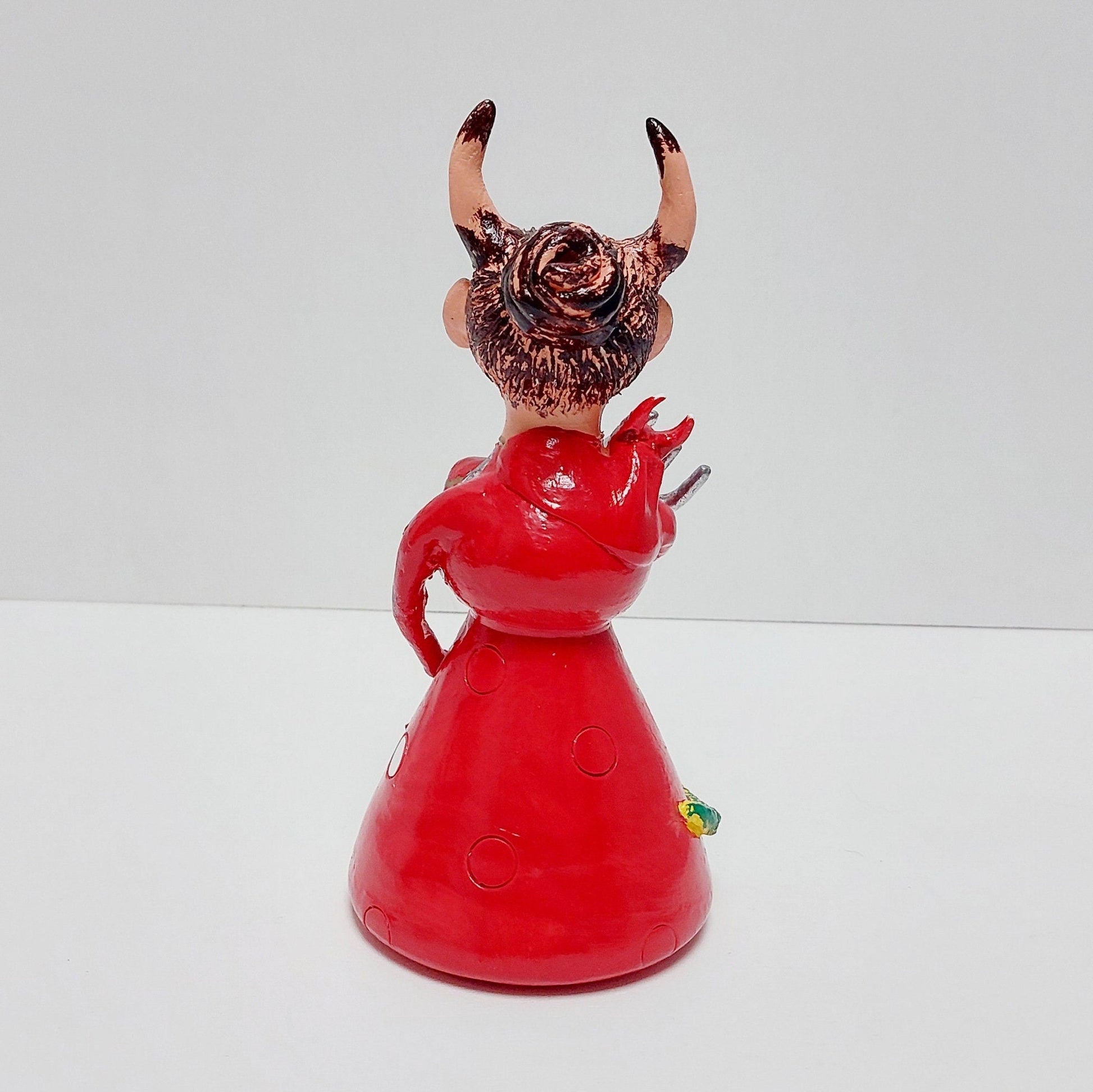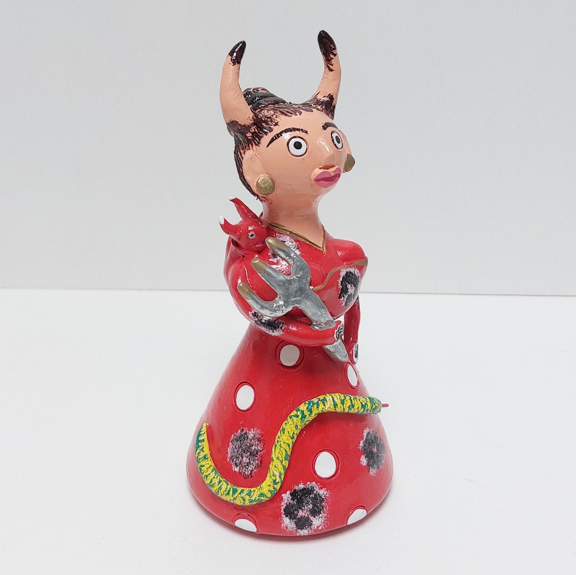 Hand modeled figure representing a woman devil, modeled and hand painted with clay. Unique piece with certificate of authenticity, by Author's Piece. Which means that it is an authentic piece, modeled by hand for at least 75%.